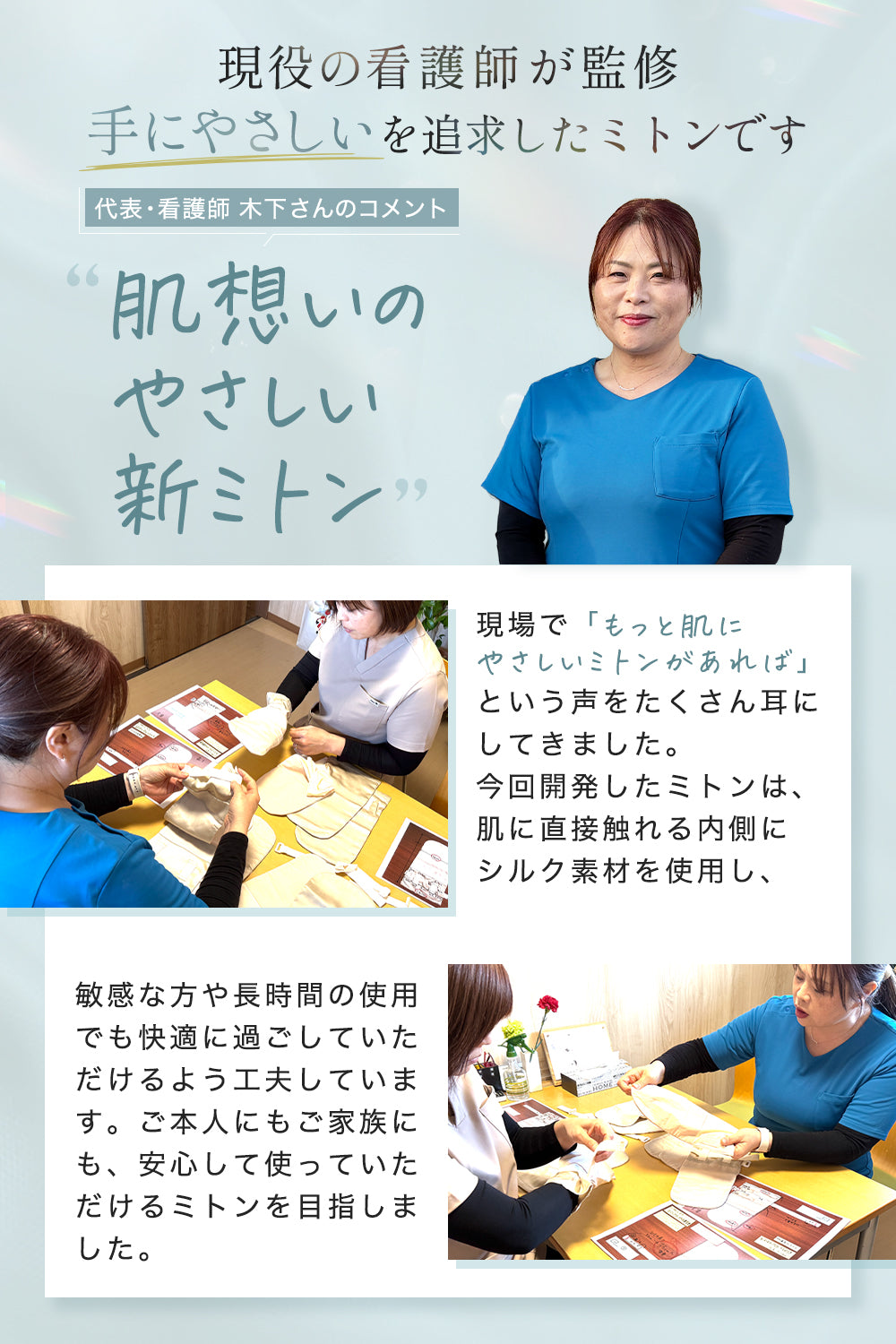 てにやさシルク 【介護施設と共同開発】 かきむしり防止手袋 介護ミトン 高級シルク なめらかな肌触り 手荒れ防止 自傷防止